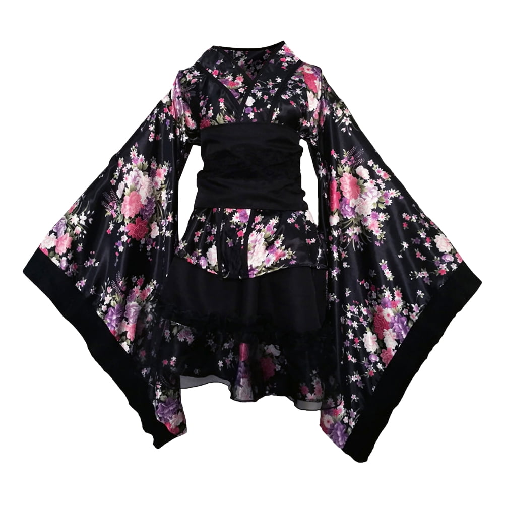 Japanese Traditional Maid Dress Kimono Cosplay Outfit Maid Costume Dress Size Xl Black Walmart Com