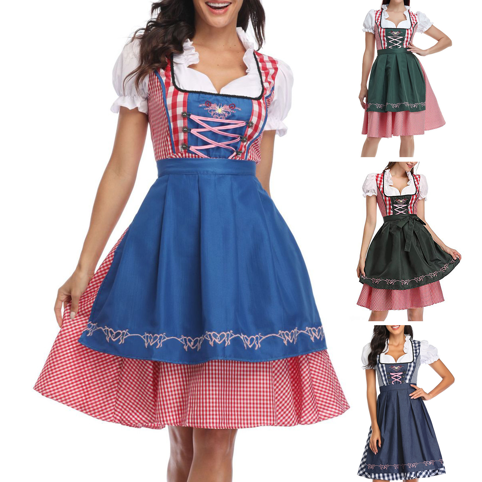 Square Collar Puff Short Sleeve Ruffle Trim Plaid Stitching Color Apron Decor Maid Costume Traditional Beer Festival Midi Cosplay Dress For Party Walmart Com